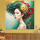 "Lyrielle" - L'impératrice Vert-Or. Couronné de tendres émeraude parsemés d'or, cet art célèbre la puissante et expressive nature de la féminité contemporaine. Un mélange d'art et de beauté, idéal pour les salons qui souhaitent refléter l'individualité et l'opulence dans leur décor. 4 sur 4.