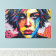 Le travail d'art numérique d'Otis Porritt présente un portrait saisissant en gros plan, éclatant d'une palette électrisante de rose chaud, de jaune vif et de bleu intense. Le visage du sujet est représenté avec des blocs de couleurs contrastés et audacieux et une texture dynamique rappelant le pointillisme, créant une esthétique pop art moderne. Des yeux bleus perçants retiennent le regard du spectateur, tandis qu'une raie noire sévère descend d'un œil, ajoutant une touche poignante. L'énergie vibrante, presque chaotique, des cheveux multicolores et du fond pointillé amplifie l'impact visuel saisissant de l'œuvre.