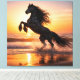 Unleash the raw power and elegance of nature with this breathtaking canvas print featuring a majestic black Friesian horse rearing on a golden beach at sunset. Captured in a dramatic cinematic moment, the horse stands tall against the glowing horizon, its flowing mane dancing in the ocean breeze as waves gently crash beneath it.