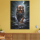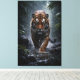 A striking canvas print featuring a majestic tiger standing calmly in the rain, surrounded by a dark, atmospheric jungle. The intense gaze, wet fur details, and cinematic lighting create a powerful sense of silent dominance and inner strength. Perfect wall art for a living room, office, or premium gift.
