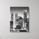 Toile dans une illustration semi-abstraite du centre-ville de Manhattan en noir et blanc, illuminée de lumières de la ville, sous un ciel étoilé