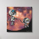 Impression de toile amusante d'un robot à l'allure métallique marchant un chien robot dans l'espace, avec une planète de ton rouge dans l'arrière - plan. Idée cadeau idéal pour tout amateur de science-fiction.