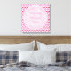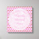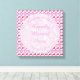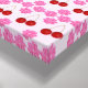 Cette impressionnante impression de toile est destinée aux jeunes mariés. La décoration est composée d'un motif de jolies fleurs de cerisiers roses, également appelé Sakura et Japan. Elles sont un symbole du printemps et sont idéales pour un mariage de printemps. Ils sont mélangés avec des paires de cerises rouges brillantes mûres. Il y a un cercle rose pâle avec des motifs marbrés blancs qui contient du texte personnalisable pour que vous puissiez inclure tous les détails importants.
