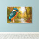 Un martin pêcheur commun est posé contre un panorama de son habitat fluvial.