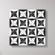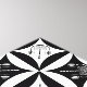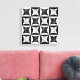 Basé sur le motif de courtepointe Amish, "Trou dans la porte de la grange", il a une torsion moderne, un cerveau humain avec casque et ondes sonores dans le trou de diamant. L'image est faite en noir, blanc et gris.