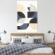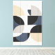Measured Horizon explores the quiet tension between structure and fluidity. Rigid grid lines establish a disciplined architectural framework, while smooth semicircular forms drift across it, softening precision with motion. The restrained palette—sand, stone gray, muted navy, and soft black—evokes mineral surfaces and coastal light, lending the composition a grounded, elemental calm. Balanced asymmetry guides the eye without symmetry or ornament, allowing negative space to breathe. With its flat, matte presence and architectural sensibility, the piece is designed to sit confidently in contemporary interiors, offering stillness, order, and subtle depth rather than visual noise.