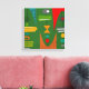Toile moderne du milieu du siècle, carrés abstraits colorés et funky et formes lune dans les tons orange, or, avocat et turquoise et gris. Un complément parfait à votre style du milieu du siècle.
