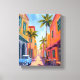 Miami Beach Colorful Street Scene Canvas Watercolor Painting