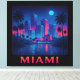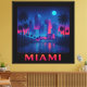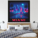 Bring the heat of South Florida nights to your walls with Miami Moonrise, a radiant cityscape design that pulses with tropical energy. This stylized illustration features glowing skyscrapers in vibrant pinks, purples, and blues, reflected in calm waters beneath a full moon. Silhouetted palm trees frame the scene, while the bold “MIAMI” text anchors the composition in a sunset-to-neon gradient.