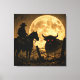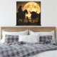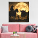 A striking and atmospheric "Gothic Western" silhouette that captures the haunting soul of a dark frontier. Under the glow of a massive, textured moon, a lone cowboy on horseback faces off against a powerful bull with glowing, hellish eyes. This square canvas features a unique, heavy-grain finish—reminiscent of weathered burlap or antique textile—giving the piece a rugged, aged aesthetic. With its high-contrast shadows and deep amber tones, this render brings a bold, supernatural energy to any space.