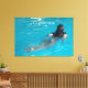Modèle femelle aux cheveux noirs nageant dans une belle mer bleue à customiser, personnalisez en changeant de nom