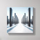 A striking digital art piece featuring a series of towering black monolithic pillars arranged in a perfect geometric perspective. The composition creates an incredible sense of depth and scale, leading the eye toward a bright, infinite horizon. This minimalist and futuristic design combines sharp architectural lines with a clean, high-contrast aesthetic, making it a perfect statement piece for modern office galleries or contemporary home decor.