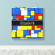Toile Mondrik Style Rouge Bleu Jaune Noir Nom Monogramme