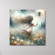 Petite fille mignonne courant avec un dandelion moelleux dans une prairie d'été dans le style de l'art de l'argent