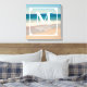 Créez votre propre œuvre d'art personnalisée sur toile carrée avec monogramme de mariage et photo de plage.