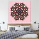 Toile de goth Pastel en rose et vert représentant une illustration kaléidoscopique de style cirque d'horreur avec les yeux et les cornes.
