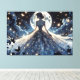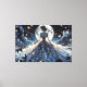 This enchanting visual art captures a serene fairy princess standing beneath a luminous full moon, surrounded by drifting golden fireflies and soft midnight clouds. Her flowing celestial gown cascades outward in intricate floral lace patterns, blending deep navy, silver-blue, and soft ivory tones into a dreamy, ethereal palette. The delicate glow of starlight and fluttering butterflies creates a whimsical, storybook atmosphere that feels both romantic and otherworldly. With its cottagecore-meets-fantasy aesthetic, this design evokes quiet magic, feminine strength, and moonlit wonder. The composition balances dramatic night sky contrast with soft, glowing highlights, giving it a boho fairytale elegance that feels timeless yet on-trend. Perfect for lovers of celestial art, dreamy fantasy, and graceful feminine silhouettes, this artwork invites you into a peaceful, star-kissed realm of imagination and light. AI generated artwork.
