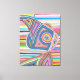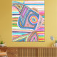 Cette conception abstraite audacieuse présente des formes géométriques superposées, surlignées de couleurs vives, qui s'écoulent en toute transparence à travers un arrière - plan multicolore rayé. Les tons clairs de bleu, rose, jaune, orange, vert et violet créent un rythme animé, tandis que les lignes concentriques et les formes angulaires ajoutent profondeur et mouvement. La combinaison de courbes organiques et de contours pointus donne à l'oeuvre une sensation moderne et énergique, parfaite pour ceux qui sont attirés par des motifs contemporains colorés.