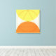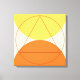Un design d'art moderne géométrique abstrait de cercles et de triangles dans les tons orange et jaune.