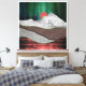 Modern mountain landscape with complex textures showing the beautiful northern lights or aurora borealis hovering over an alpine setting.