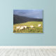A photographic design of Welsh mountain sheep grazing on the sunny hillside just as the rain is about to start.
