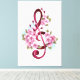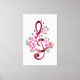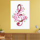 Pink treble clef with delicate, detailed pink Japanese cherry blossoms against white background painted over with light blue paint Blooming pink sakura.