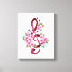 Pink treble clef with delicate, detailed pink Japanese cherry blossoms against white background painted over with light blue paint Blooming pink sakura.