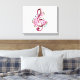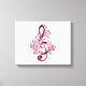 Pink treble clef with delicate, detailed pink Japanese cherry blossoms against white background painted over with light blue paint Blooming pink sakura.