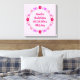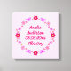 Cette impression sur toile présente une image d'art numérique représentant un groupe de fleurs et de papillons, chacun d'une nuance de rose pour représenter une petite fille. Les fleurs comprennent des dahlias, des nénuphars, des myosotis et des chrysanthèmes.
