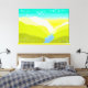 Toile Nature vive couleurs vives collines rivière art or