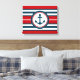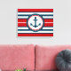 Design nautique avec décoration d'ancre en forme ronde sur arrière - plan rayé rouge, bleu et blanc