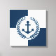 Nautical themed design with anchor and laurel wreath decoration over blue and white geometric background