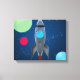 Ciel ocre nocturne de l'espace avec des planètes colorées et lumineuses et des étoiles blanches, avec un navire-fusée argenté volant à travers le ciel. Idéal pour une petite chambre pour les garçons pour le type qui aime l'espace et le voyage. Tous les Designs Copyright © 2012 www.CuteComfy.com