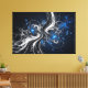 A frozen cosmic storm: silver and black fluids intertwine in dynamic spirals, while floating blue crystal shards and stellar cores evoke star births. Hyper-detailed digital art merging chaos and order—ideal for visionary and tech-forward brands.