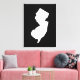 La forme de l'état du New Jersey en noir et blanc. Vous pouvez modifier la couleur de l'arrière - plan ou ajouter un message texte souvenir personnalisé.