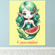 Mignonne sirène aux verres tenant de la pastèque pour personnaliser