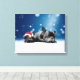 Noël Français Chien de taule Chien de Chien de neige chapeau santa Toile.Mignonne Chien de taule français chiot dormant dans la neige portant chapeau santa. Un cadeau parfait pour Noël !