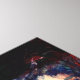 Peinture acrylique colorée, fantaisiste et expressive sur le bois dans des couleurs bleu noir rouge. Art contemporain par Bulgan Lumini (c)