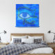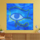 Impression sur toile avec l'Œil d'Horus texturé bleu avec un design abstrait de contour doré. Ce design présente l'Œil d'Horus dans des tons bleus sur des Yeux d'Horus délavés en arrière-plan.