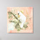 Aquarelle de pêche douce peinte sur toute la face du papier. Donné une texture légèrement grunge vieilli avec le feuillage Boho floral.s et le cockatoo perché.
