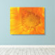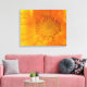 Cette impressionnante impression de toile présente une photo détaillée d'un marigold orange vif. La photographie a été prise en utilisant la macro photographie et montre une étonnante quantité de détails sur les pétales et le centre de la fleur.