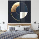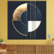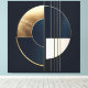 Explorez l'interaction sophistiquée de la couleur et de la forme dans cette oeuvre abstraite fascinante. Un cercle parfait, rendu dans un bleu marine profond et riche, fournit une toile profonde. Dans ce champ circulaire, une section distincte arrête l'oeil, défini par une bande d'or lumineux et opulent. Cette bande peut segmenter ou arc, focus de dessin. La composition est animée par des lignes dorées fines (rayonnant, croisant ou faisant écho à la géométrie), ajoutant des détails et un rythme complexes. Un segment ou une zone de blanc brut et net offre un contrepoint audacieux, créant une tension visuelle et un équilibre par rapport à la marine profonde et l'or radiant. La pièce évoque un sens de l'élégance minimaliste, de la géométrie céleste ou un fragment d'un design cosmique plus grand et invisible. Il parle d'équilibre, de précision et de la beauté que l'on retrouve dans les relations élémentaires pures et sans fioriture. Cette oeuvre est un énoncé de sophistication moderne, parfait pour ceux qui apprécient l'art non représentatif qui invitation la contemplation et l'interprétation.