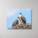 Deux balbuzards juvéniles sont assis dans leur nid. Ils ont environ 8 semaines et vont bientôt prendre leur envol. Ils ont passé leurs journées à manger, à dormir, et à flacher leurs ailes. Ils ont grandi vraiment, très vite sur la période de 8 semaines et seront bientôt sur leur propre vol tout autour.