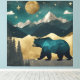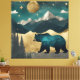 Ce tableau représente une belle représentation d'un ours qui se promène dans les montagnes la nuit. L'ours est entouré d'arbres et de montagnes, et la lune brille dans le ciel. Le tableau apporte une touche de fantaisie et de magie à toute collection.