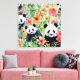 Paysage cool Style Peinture Panda Ours Dans Jardin Fleuri Coloré.