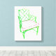 Il s'agit d'un dessin en toile d'un tableau original gouache/encre de l'artiste Anne Harwell. Elle est dotée d'une chaise en bambou vert classique de style Palm Beach, dotée d'un coussin à carreaux de framboise.