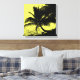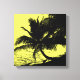 Une image frappante et audacieuse d'un palmier en silhouette. Un design pointu de palmiers et de l'océan. Plan jaune et noir. Style pop art. Art tropical. Palmiers tropicaux au coucher du soleil en silhouette.