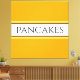 Ce design amusant présente du texte à l'intérieur d'une large bande blanche centrale surlignée de rayures noires et jaunes clairs contre des rayures arrière - plans jaune doré et brillantes. Le texte PANCAKES peut être personnalisé.