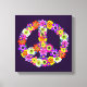 Un signe de paix fleuri dans les tons rose, jaune, orange, violet, vert, blanc et noir.