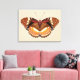 Toile enveloppée dans une illustration vintage d'un élégant papillon Monarque dans les tons marron, rouille, orange et crème sur un arrière - plan beige clair